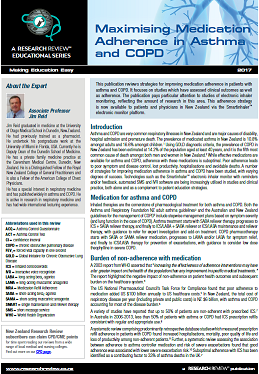 This publication reviews strategies for improving medication adherence in patients with asthma and COPD. It focuses on studies which have assessed clinical outcomes as well as adherence. The publication pays particular attention to studies of electronic inhaler monitoring, reflecting the amount of research in this area. This adherence strategy is now available to patients and physicians in New Zealand via the Smartinhaler™ electronic monitor platform.