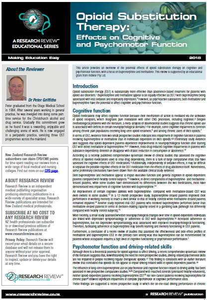 In this review: This article provides an overview of the potential effects of opioid substitution therapy on cognitive and psychomotor function, with a focus on buprenorphine and methadone.